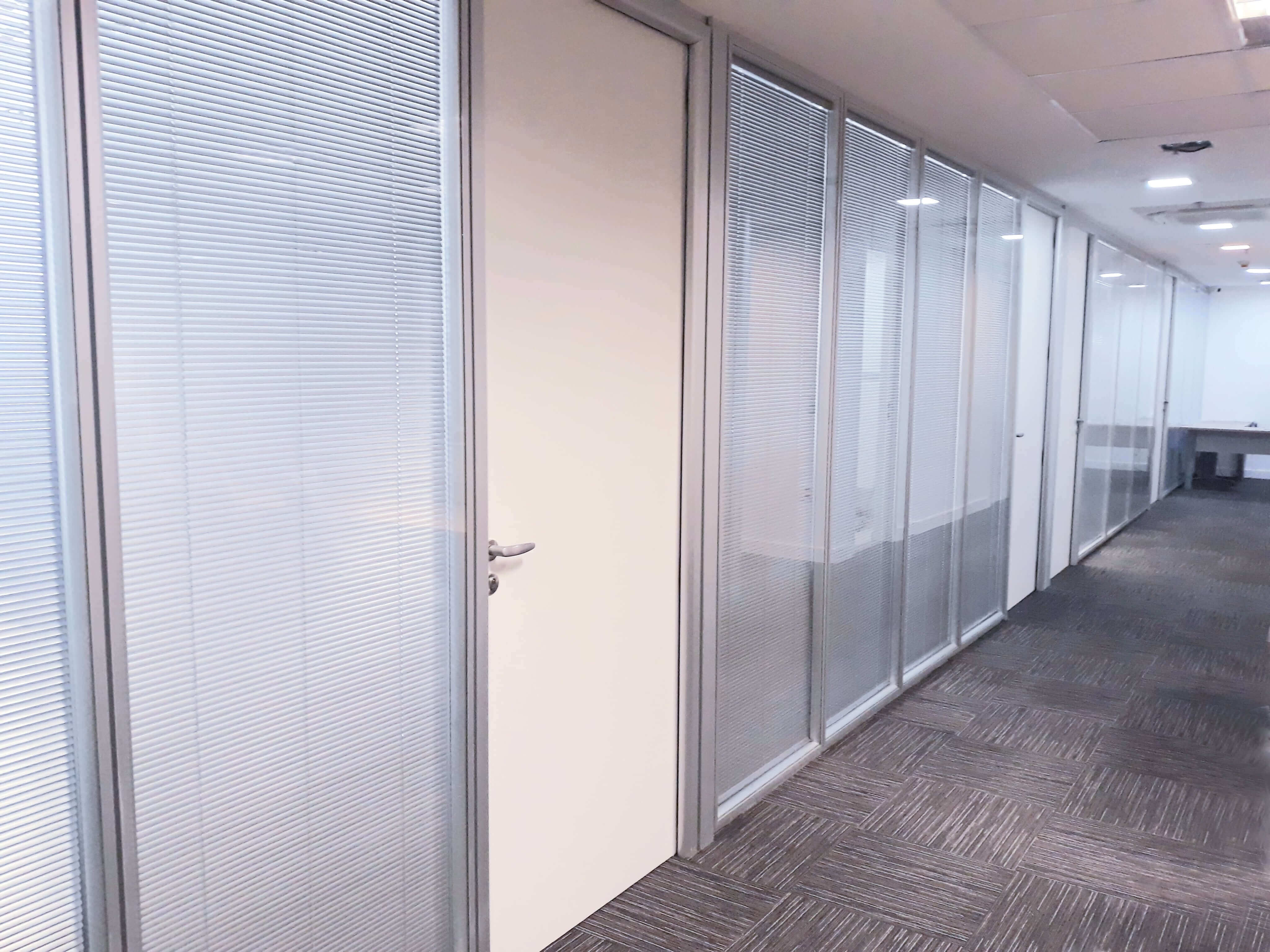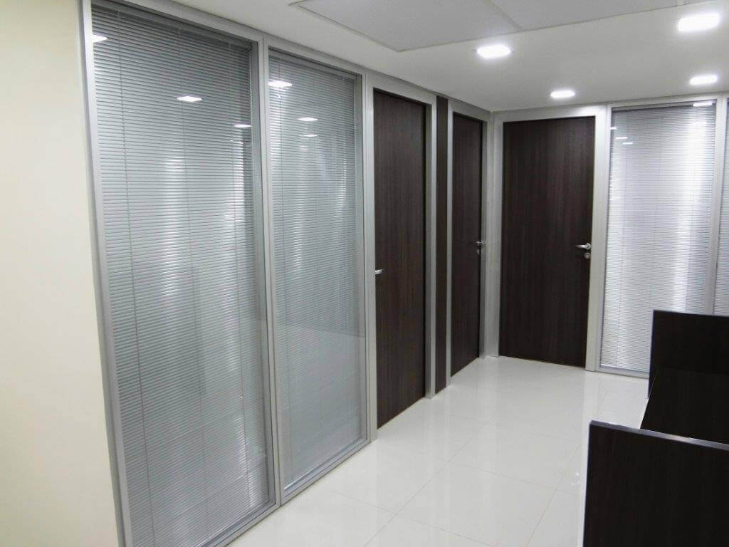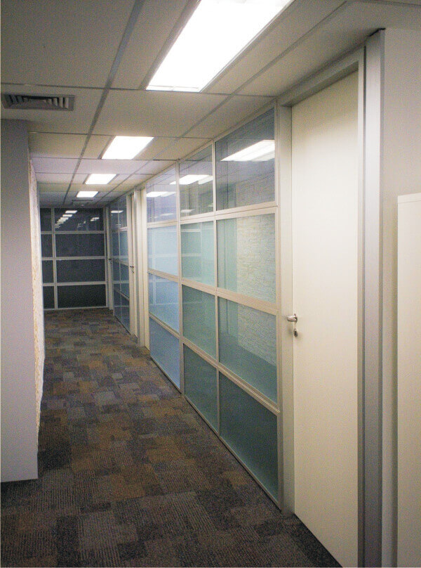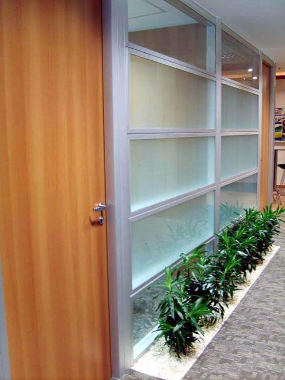 Divisórias com propriedades de isolação sonora e acústica em conformidade às normas técnicas vigentes. Permitem fácil modificação de layout e intercâmbio entre módulos. São produzidas com materiais e acabamentos aplicáveis aos padrões das grandes corporações.